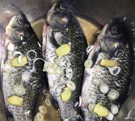 鯽魚洗凈用料酒蔥薑醃制去腥