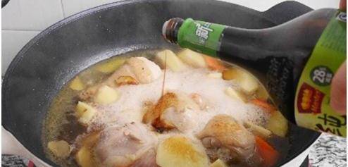 上述步驟均完成之後,我們就可以倒入適量的啤酒瞭。在這裡的適量指的也就是漫過鍋內的食材即可。然後加入根據自身口味加入適量的食鹽和辣椒,再倒入適量的醬油,混合充分,使鍋中的食材均能充分與調料相接觸。蓋上鍋蓋燜制一段時間。
