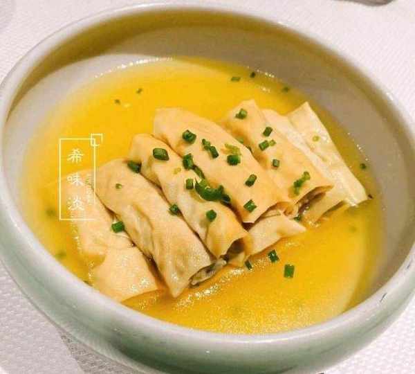 第三個菜:雞汁百葉包,這菜還有一點眼前一亮,很鮮美的,這個就是類似千張裡包入瞭一些肉餡,蒸制完成,雞汁澆入的,我們3個人還不夠分,領導也加入一起,直接秒光瞭。