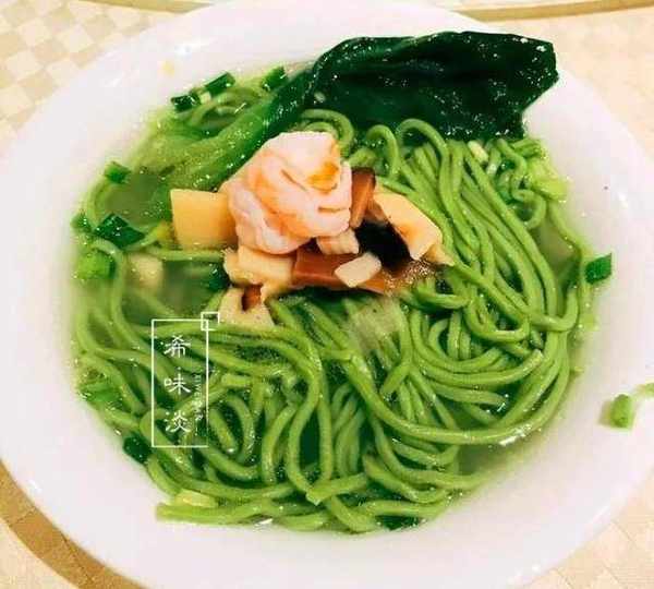 第六個菜:青菜面,又是一個主食,沒啥好期待瞭,大傢吃飽就是瞭,這個青菜面也有意思的,面條是混合瞭青菜汁揉的面條,然後加工成面條,這澆頭就不恭維瞭,就那麼一撮。我隻能說這頓就是吃飽,加班就吃這個,一首涼涼送給自己。