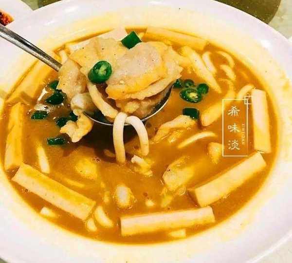 第一個菜:酸湯沙巴魚,這個菜最早上來的,酸湯很開胃的,裡面放瞭蠻多材料,還放瞭粗面,因為餓瞭,大傢吃瞭不少。