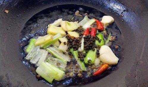 開始制作,鍋裡放油,燒到八分熱,把調料倒進鍋裡爆香