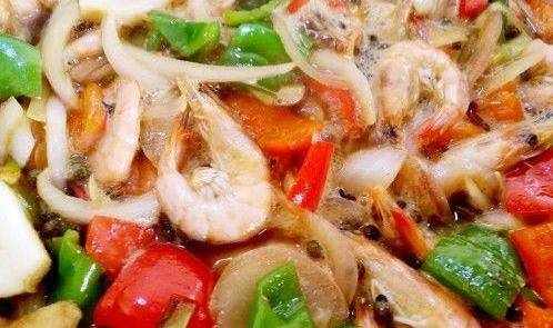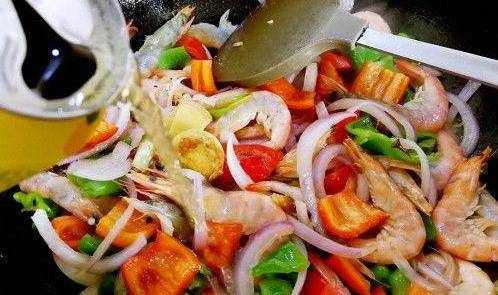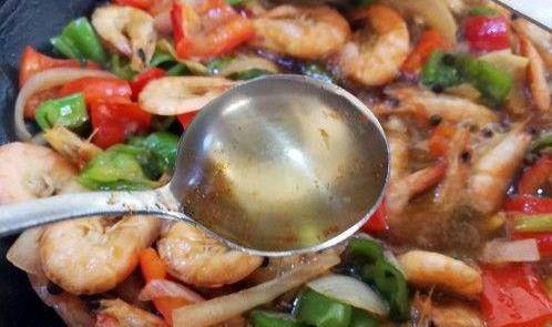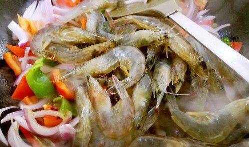 倒入蝦子,翻炒一下