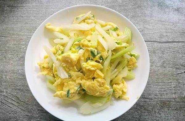 第四道是西芹炒雞蛋。買一棵西芹炒瞭幾次瞭,挺劃算的呢。食材買回來要盡快食用完,於是就用它炒瞭雞蛋。剛好孩子的早餐沒有吃雞蛋,雞蛋一直是平民營養品,也是傢常下飯菜。做法:雞蛋加蔥花,少許鹽,清水,打散,西芹切好在開水中焯一下過涼水,雞蛋入鍋中炒熟,加入西芹,精鹽炒勻即可出鍋。