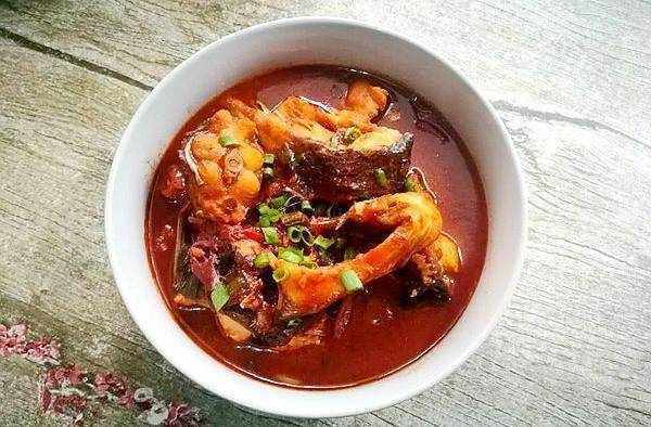 第二道是番茄燉魚,番茄燉魚是傢鄉常做的傢常菜,番茄酸甜開胃,魚肉鮮美可口,開胃下飯,一直是傢人的最愛。做法:魚段用鹽醃制一會,煎制之後裝出;番茄炒一炒,加海鮮醬、蠔油、生抽,炒一炒,加入魚塊同燉。加入料酒,少許糖同燉至濃湯汁濃稠,加適量鹽調味。(具體可看上一個帖子。也可以按自己口味來調制味道。)