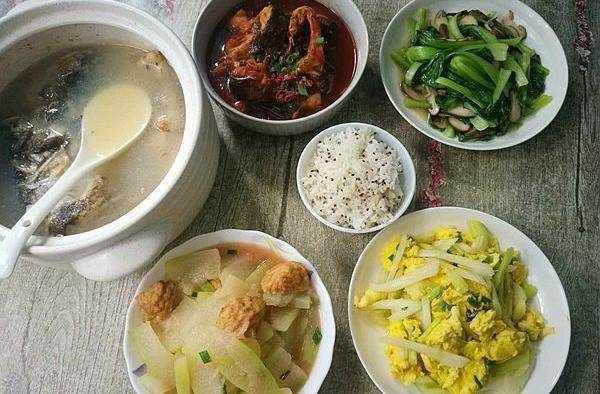 今天的午餐四菜一湯,剛好朋友和我聊天,問我中午都做瞭什麼菜,發過去之後說,如此豐富,還這麼誘人,還說要來蹭飯呢。而孩子坐在桌前說“這麼多菜呢?都是她愛吃的。”你也來看一看這些菜肴中,是否有你愛吃的?其實,每天需要買菜,需要做飯,但也常常會犯糊塗,不知買哪些食材為好,有時候幹脆是每樣備一些,做菜的時候也常常是臨時發揮,偶爾小編的腦子裡常會冒出一些新菜譜。