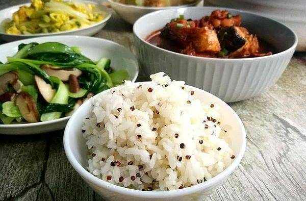 主食:藜麥與大米同煮的米飯,每次在煮粥或是煮飯的時候,會添入少許同煮,增加瞭口味也多瞭營養。藜麥營養豐富,其富含多種氨基酸,其中有人體必需的全部9種必需氨基酸,平時可以吃一些也是較好的。而孩子爸說,這是什麼呢?小編逗他說:油菜種子。