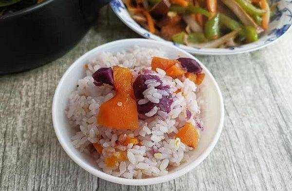 主食:粗糧米飯,加入一些紅薯、紫薯,藜麥,與大米同煮,豐富味美的主食,薯類食材含豐富的粗纖維,促消化,加快新陳代謝,傢人飲食更健康。