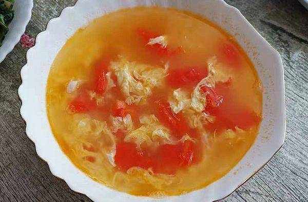 第五道:番茄蛋湯——一個番茄,兩隻雞蛋,一碗快手湯,全傢都喜歡。鍋中加入少許油,加入番茄炒一炒,加入清水燒開,淋入雞蛋液,加入精鹽調味即可。喜歡蔥花的可以撒入一些。