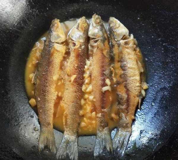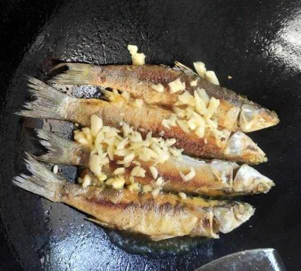 小貼士:煎魚的時候一定要註意,不要煎爛瞭,這種魚要煎過再煮才好吃,如果直接放蒜煮就會失去瞭魚的美味,而且也容易把魚肉煮爛。