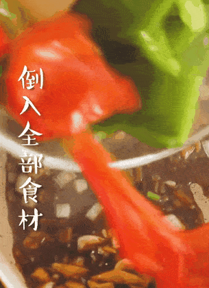 7.第七步,放入食材、翻炒大火收汁