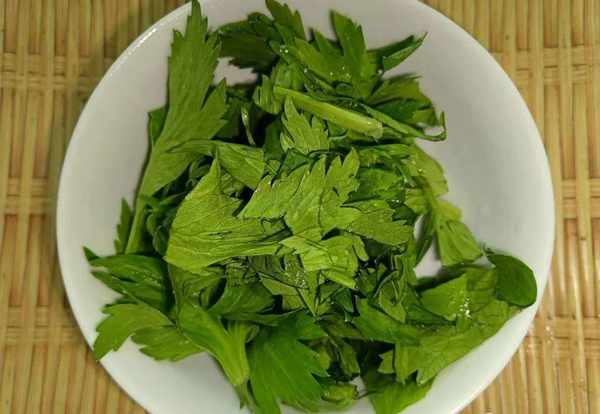 1.芹菜洗凈,洗幹凈後的芹菜切段,切好的葉子跟莖要分開後;