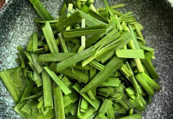 1.將備好的韭菜把黃葉去掉,去掉之後再用清水給它沖洗幹凈洗凈後切段放在一旁備用。豆芽菜洗幹凈,洗凈後的豆芽菜放在碗中備用;