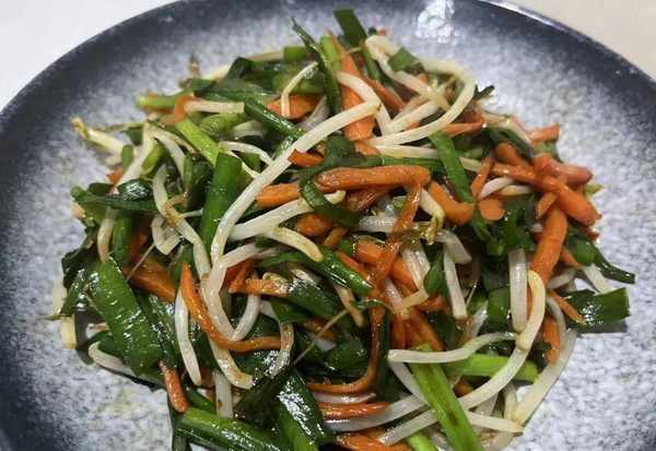 韭菜,豆芽菜,胡蘿卜,食鹽,蠔油,食用油