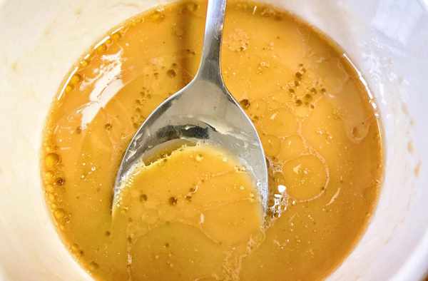 2、裡脊肉在醃制的同時,開始調料汁,料汁中包括少許白糖、1勺料酒、1勺半生抽、2勺陳醋、1勺香油、1勺淀粉、1g鹽以及適量清水,把這些全部倒入碗中後,攪拌均勻備用。