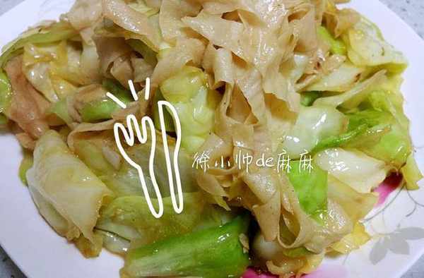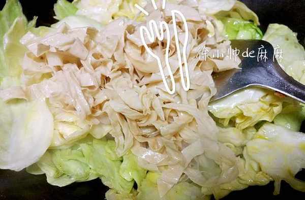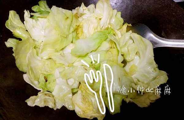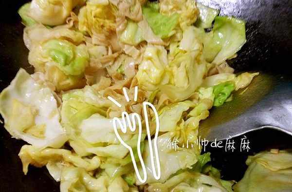 2、幹炒包菜的時候一定是中小火,火大瞭會糊掉的。
