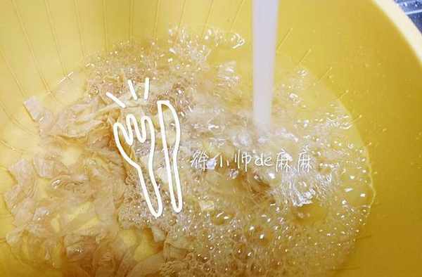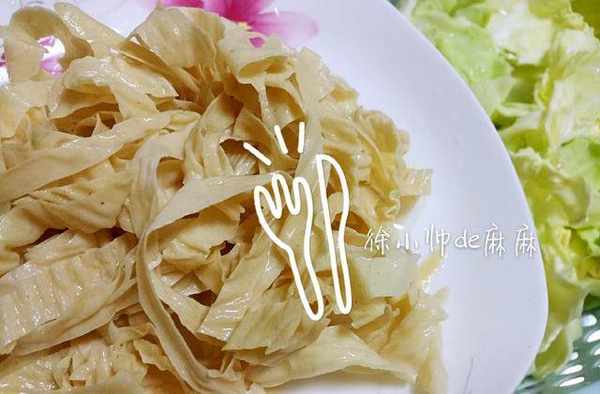 1、蛋白肉抓一小把提前泡開,然後洗凈瀝幹水。包菜用手撕開,撕成小片,洗凈瀝幹水。