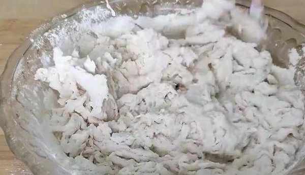 首先大碗中倒入300克的面粉,三克的酵母,一勺白糖,促進酵母的發酵,先攪拌均勻,然後逐漸倒入約170毫升的溫水邊倒邊攪,攪拌至棉絮狀,然後揉成光滑的面團,放到陽光處開始發酵,接著我們開始做餡。