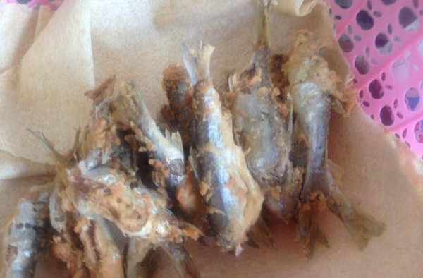 由於這魚比較小,而且多刺,隻能炸著吃。把魚掐頭去內臟,洗幹凈。放鹽,胡椒粉醃制10分鐘,由於天熱我隻醃制瞭5分鐘,還沒完全入味。