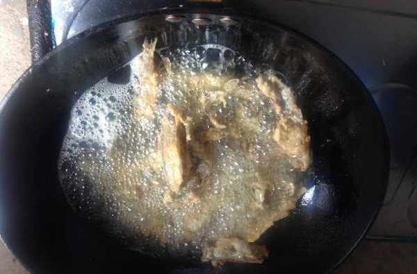 炸魚的時候,全程要註意火候。最初放魚的時候是很小的火,隨著魚炸的情況再調節火的大小。