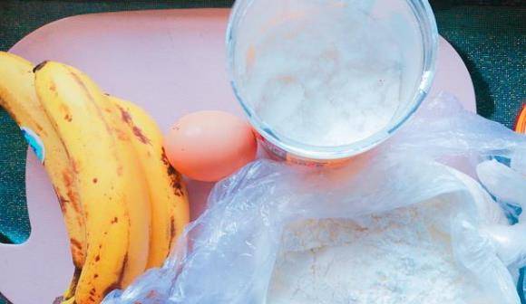 準備食材:香蕉三根,玉米淀粉,面粉,雞蛋一個,白糖。