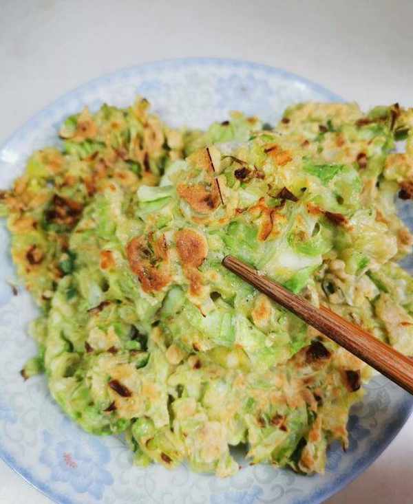 這個卷心菜餅食材也比較簡單,卷心菜,雞蛋,少量面粉,蔥花。