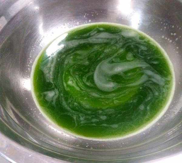 第1步、把黃瓜皮放料理機裡,放沒過面的水打成汁,用過濾豆漿的網篩過濾一下。