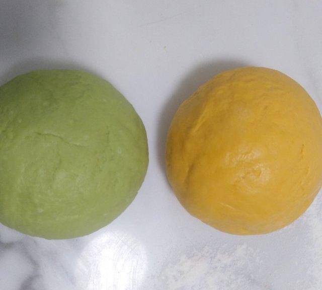 第5步、然後和成光滑的兩個面團,蓋上保鮮膜醒發20分鐘。