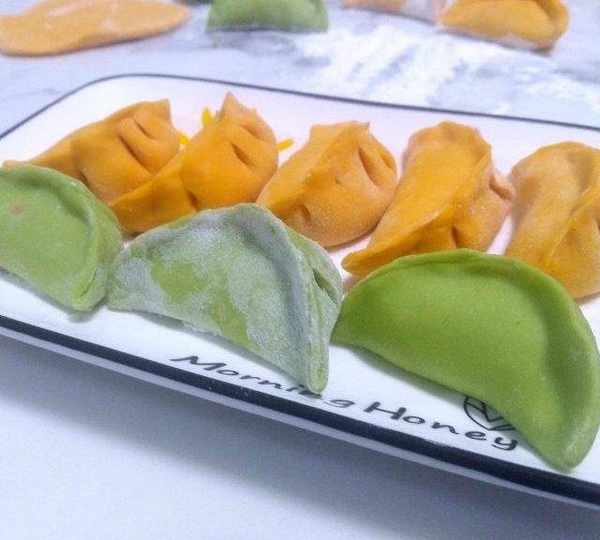 第10步、包好的餃子圖。這兩種顏色放一起,特搭。