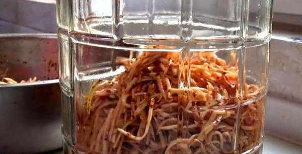準備一個幹凈的玻璃罐,加點高度白酒進去,用一個幹凈的抹佈蘸著白酒擦洗一下,放在通風處晾幹,因為芥菜絲需要在罐子裡二次發酵,如果罐子清理不幹凈帶有雜質的話,會使芥菜絲發黴變質。