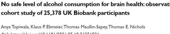 這項研究重現瞭之前《柳葉刀》的研究結果,並進一步揭示瞭飲酒對人腦結構和功能的損害,因此,不存在安全的飲酒量。人類大腦中出現的一些細微變化,通過常規測試無法立即檢測到,這些細微變化在覺察不到的情況下會導致更明顯的記憶力變化,這些細微變化就表明大腦已經受到損傷。