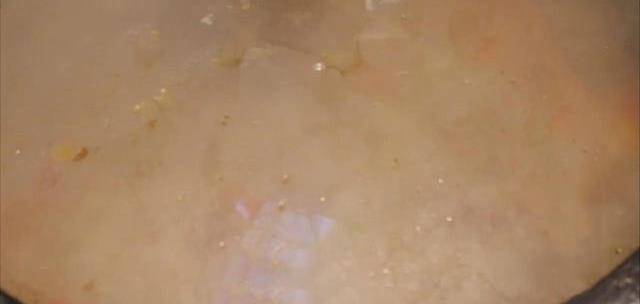 8.為瞭使米飯更美味,我們必須確保所有大米均勻地包裹在焦炭下.所以在在燉過程中每2-3分鐘轉動鍋一次,讓米飯受熱均勻,避免鍋底糊掉.