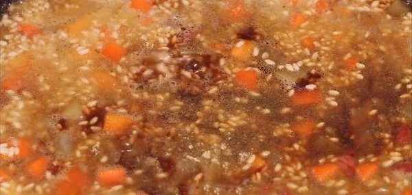 5.加入胡蘿卜後,將其攪拌均勻,然後用火將其加水.水的量應與成分平行.