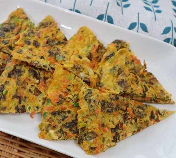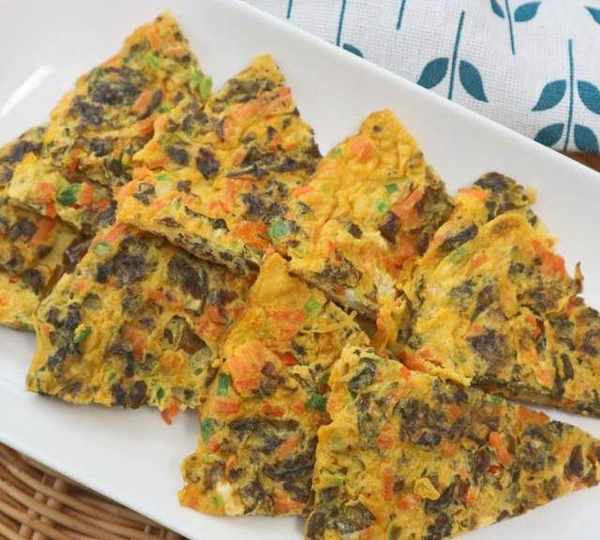 第10步、地皮菜煎蛋餅制作完成,輕鹽降脂,清熱去火。