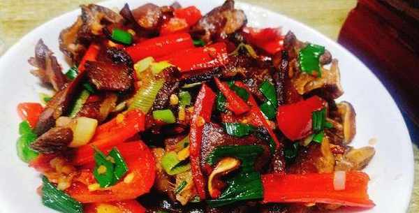 做法:熏的豬舌頭一個,用溫水和鹽一起清洗幾次,撈出瀝幹切片,鍋裡熱油倒入豬舌頭翻炒片刻,接著倒入調料翻炒均勻加入紅辣椒、蔥花炒熟即可。