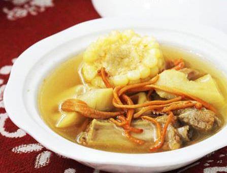 原料:排骨400克;蓮藕200克;玉米1根;蟲草花10克;