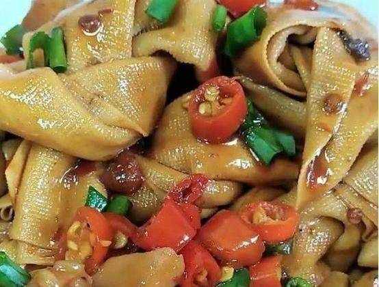 3、收湯汁,淋入水淀粉。撒蔥花。美食完成。好吃的讓你隻挑豆皮吃。真的太香啦!