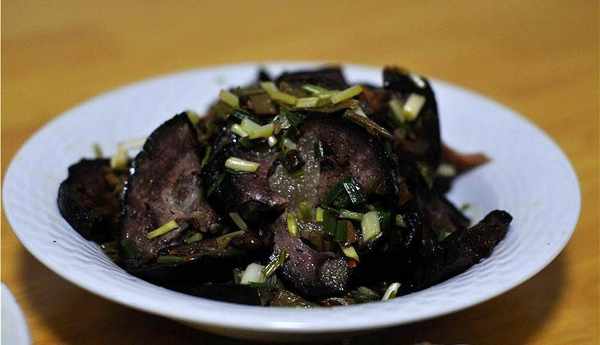 美味的豬血丸子,加點蔥花簡單炒炒就非常美味瞭。