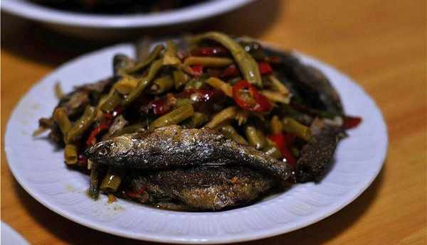 酸豆角炒火焙魚,火焙魚是 媽媽親自從老傢的河裡籠上來的,然後親手用小火焙幹,加上自己做的酸豆角燜熟,超級下飯呢。