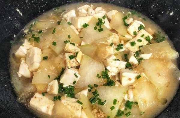 食材:冬瓜、豆腐、蔥、胡椒粉、淀粉
