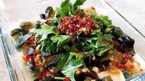 2.皮蛋切丁鋪在豆腐上;大蒜剁成碎末,用鹽、糖、醋、生抽|、味精和一點點涼白開拌勻,澆熱油兌成碗汁;