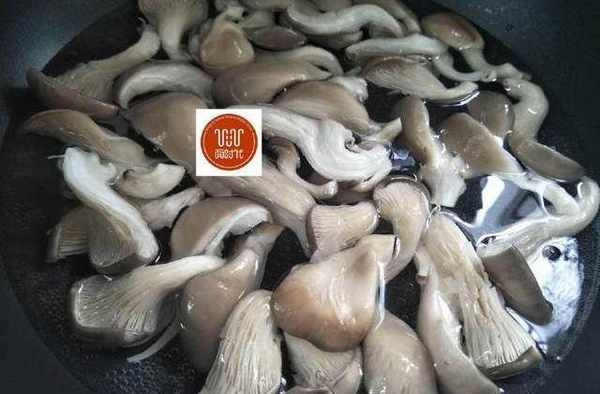 2、鍋內放少量水,水開後快速的焯一下蘑菇條撈出。
