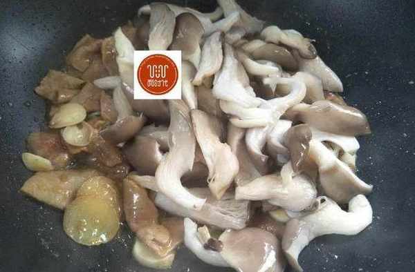 6、一分鐘後即可下蘑菇翻炒。