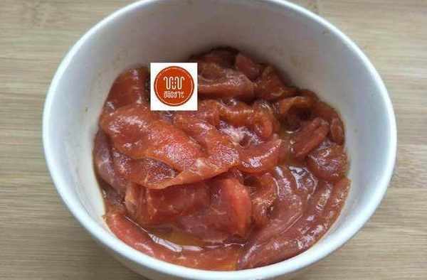 4、肉切片加淀粉,少量鹽,生抽,拌均勻放置一會兒。