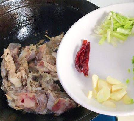 配料:小蔥、生薑、大蒜、幹辣椒適量