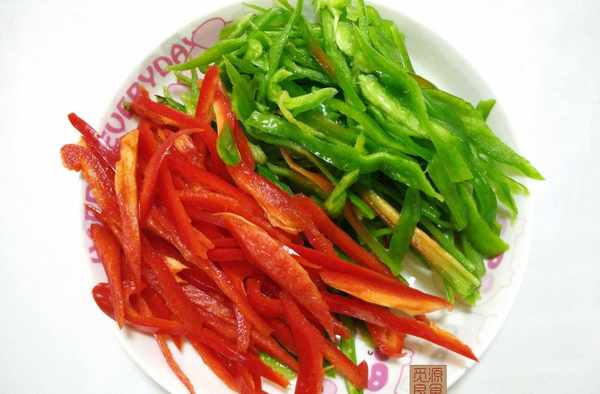青椒和青紅椒分別切絲細絲,洗凈待用