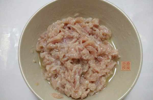 豬肉瘦肉洗凈,切成肉絲,放入碗中。肉絲為什麼要用生粉和色拉油醃制一下?水淀粉遇熱會變的粘稠很容易把肉絲包裹住,使肉絲在成熟的過程中水分少流失,這樣肉吃起來比較嫩。營養少流失。這是炒肉絲的時候在生肉絲上裹淀粉的作用