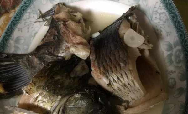 香鯽魚:鍋內放入適量的豬油開中火加熱,油溫至六成熱放入蒜頭、薑片炒香,放入鯽魚兩面煎。魚煎到六成熟放入黃酒及適量的熱開水燜煮,大約煮30分鐘加入鹽開始收汁。待汁收好即可,這道魚非常鮮美,讓人忍不住多吃兩口。