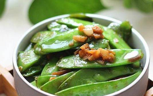蒜蓉荷蘭豆:1.荷蘭豆洗凈,摘掉頭尾和絲絡,洗凈2.蒜切成碎末3.炒鍋放油,放入蒜末炒出香味4.放入荷蘭豆煸炒5.煸炒至全部變色斷生,放鹽調味,炒勻後盛出即可;