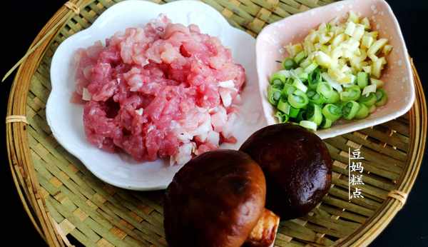 2、準備好肉末、2個香菇、大蒜末、蔥末。